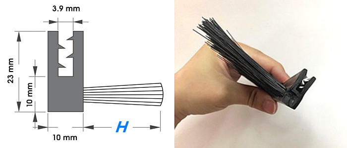 이 유연한 브러시는 차량, 특히 버스의 바퀴 주변을 밀봉하고 보호하기 위해 제작되었습니다.이 제품은 클립형의 유연한 고무 받침대에 나일론 털이 촘촘히 박혀 있는 구조입니다. 털은 고무 받침대 측면에 촘촘히 박혀 90도 각도를 이루고 있어 이러한 명칭으로도 불립니다.측면 털뭉치 유연 스트립 브러시.
