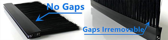 유연한 클립형 프로파일 스트립 브러시와 비교했을 때, 이 견고한 버전의 가장 큰 장점은 훨씬 높은 브러시모 밀도입니다. 유연한 클립형 브러시는 일반적으로 스테이플 고정 공법으로 제작되어 브러시모 밑부분의 구멍 사이에 작은 틈이 있습니다. 이러한 틈 때문에 케이블 입구를 완전히 밀봉하기 어렵습니다.